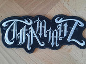Black t-shirt with the Thammuz-logo in white / greyscale. Printed on Gildan heavy cotton shirts.
